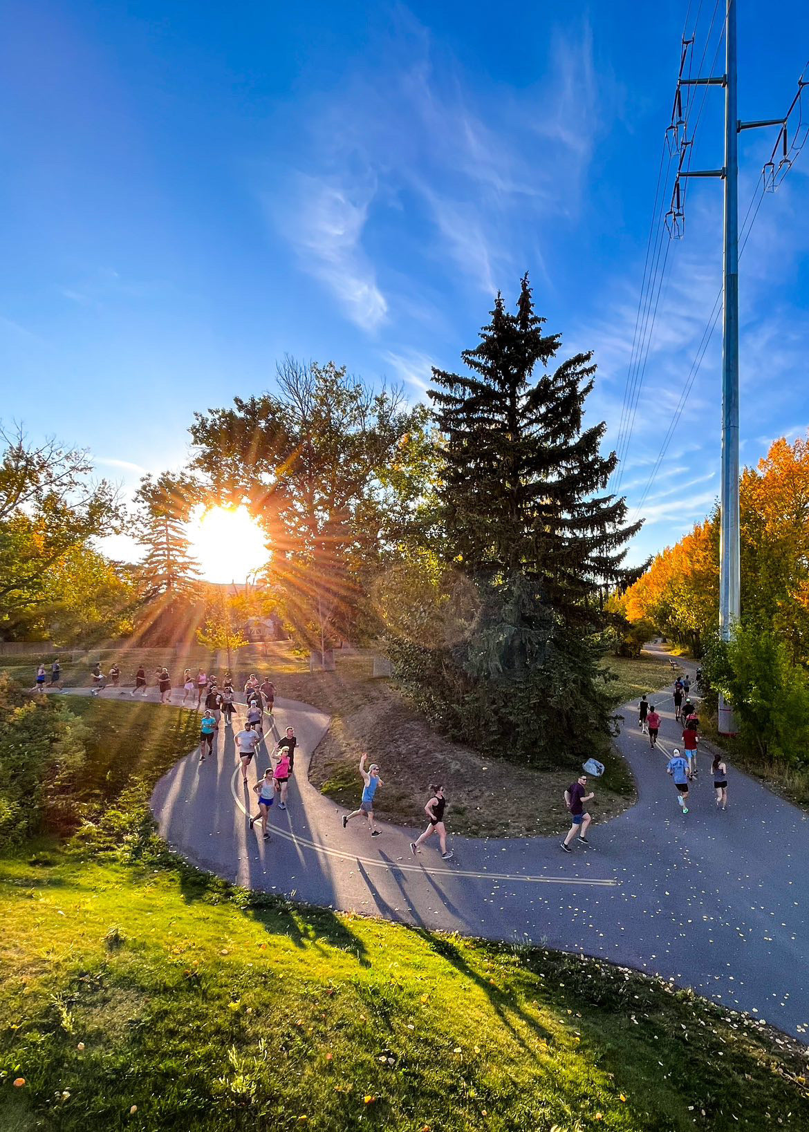 Route: Typically 15-25km along the Bow River Pathways (with a shorter option available)
